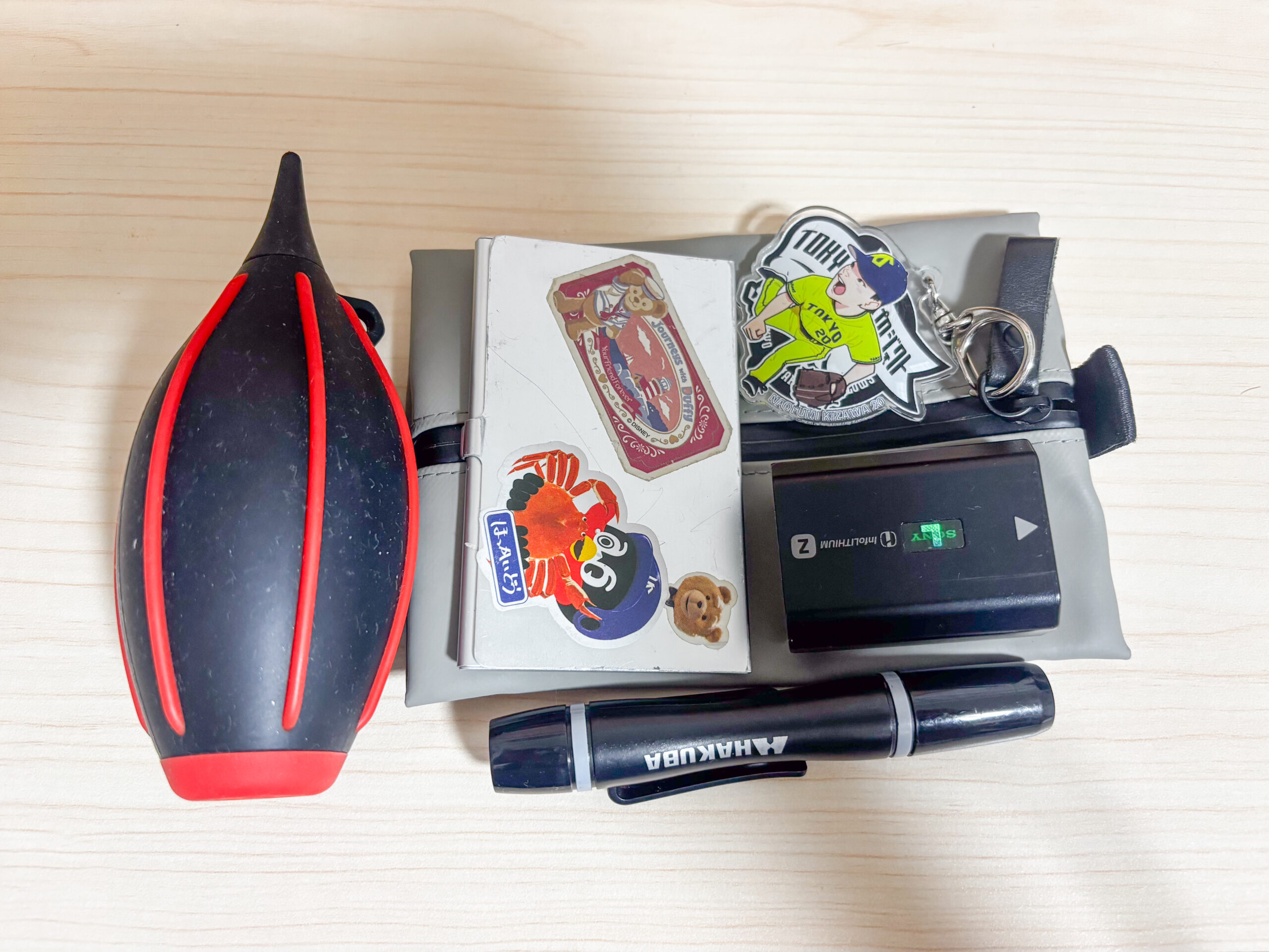 球場でレンズを交換しない場合は、レンズペンだけ持っておけばOKです。
