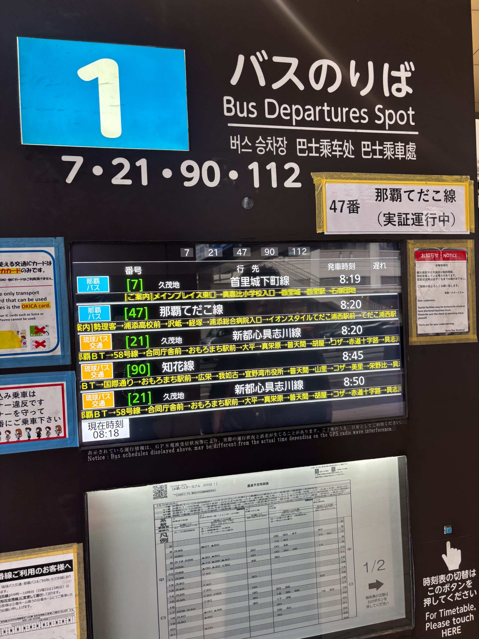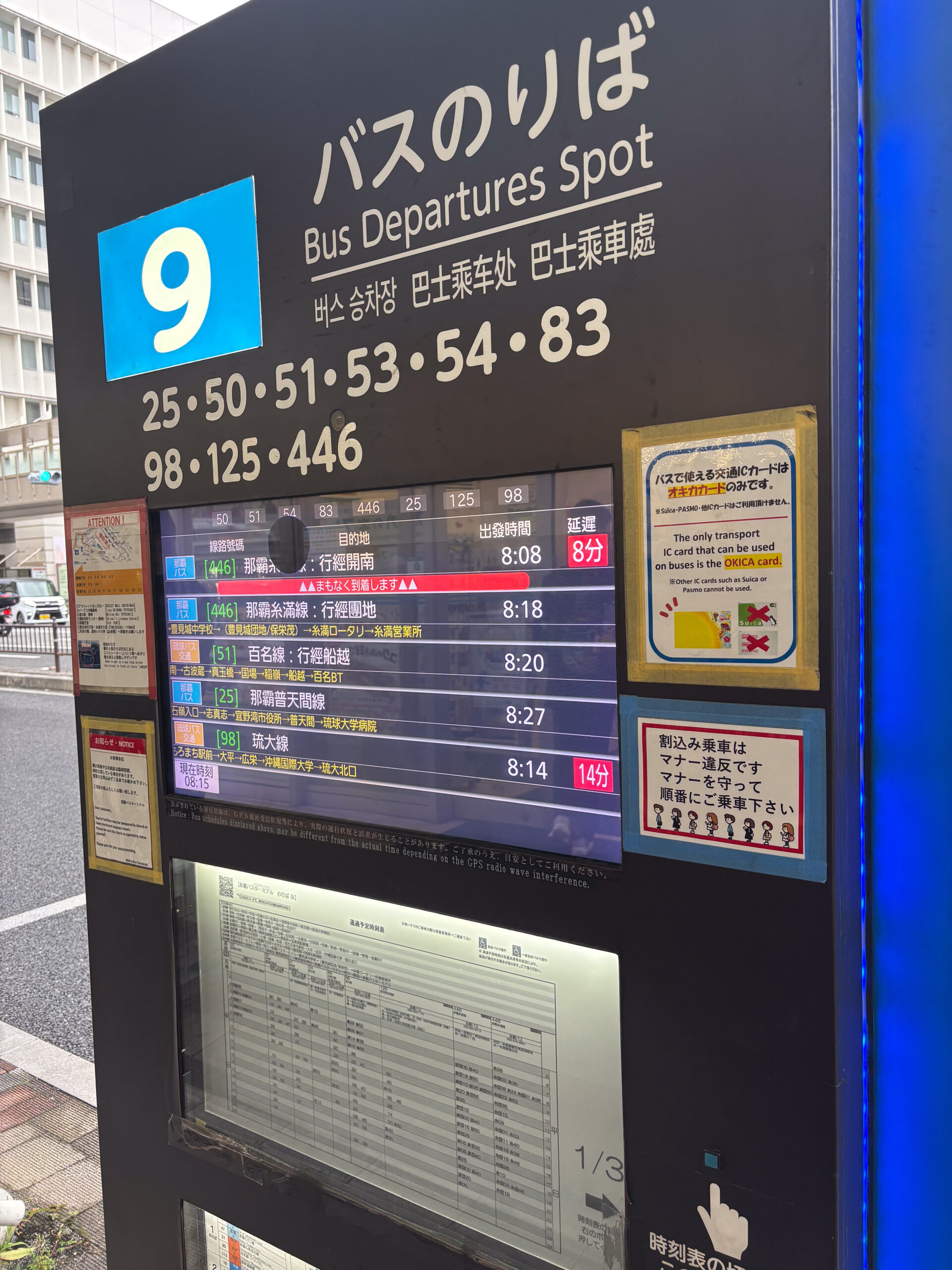 交通系ICカードはOKICAのみ使えたので、那覇に着いたらOKICAカードを作っておいたほうが無難です。